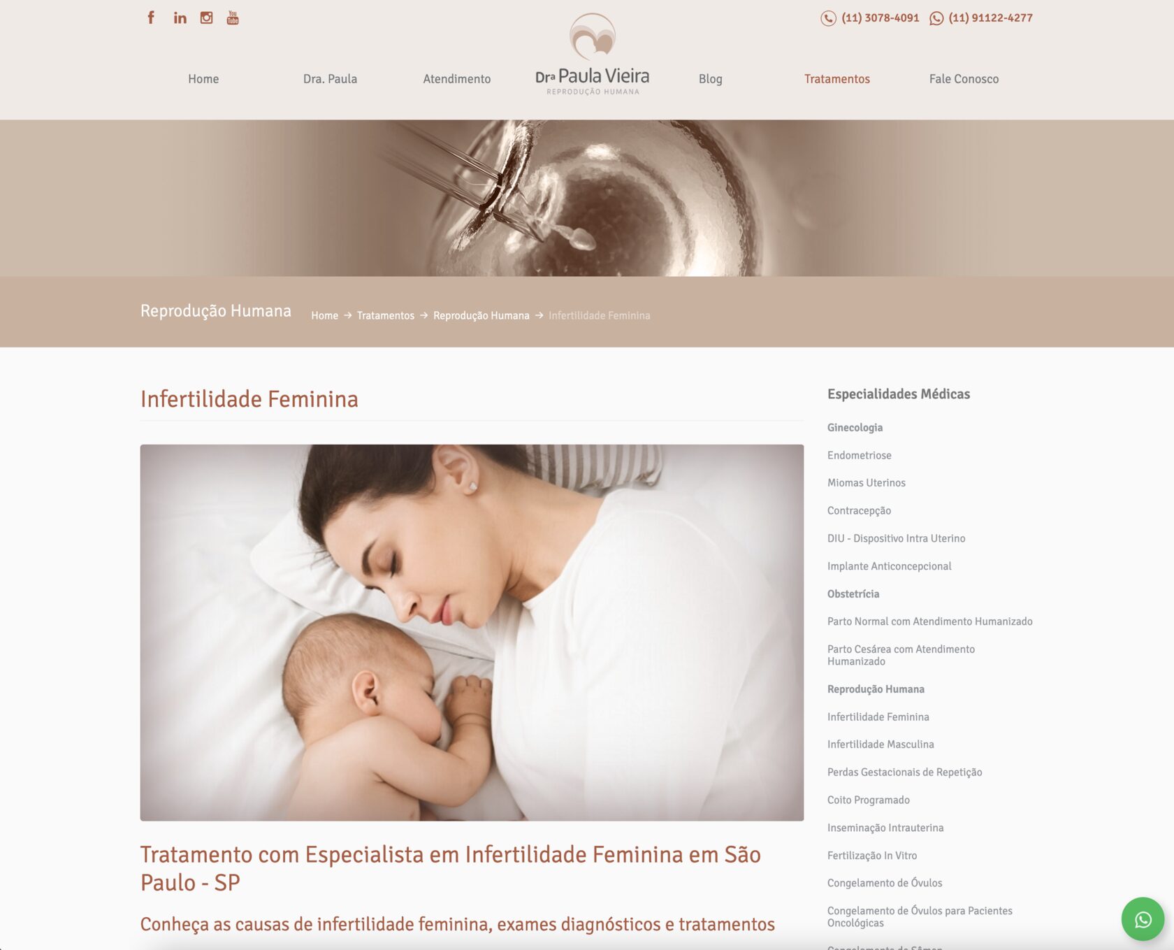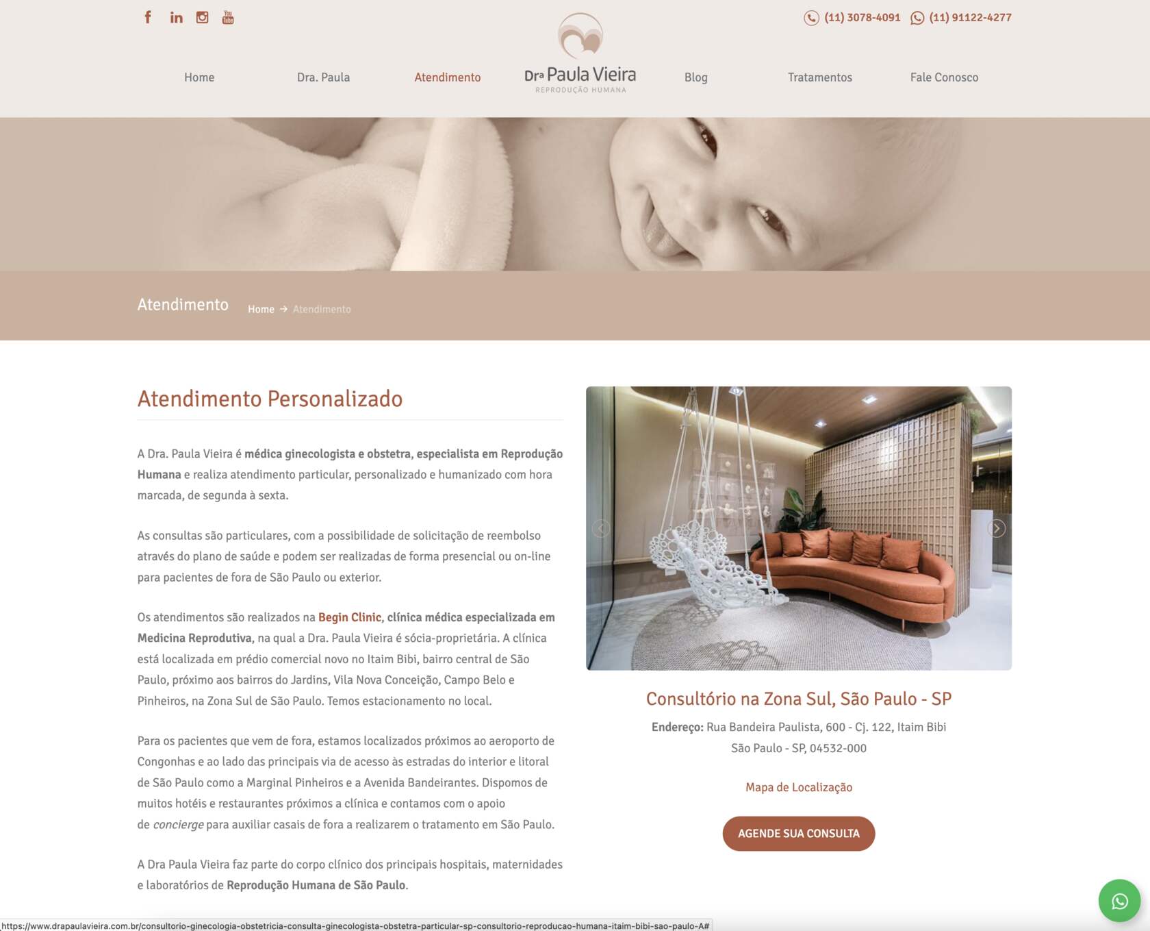 A Dra. Paula Vieira, ginecologista e obstetra especializada em reprodução humana, nos procurou com um objetivo claro: reduzir sua atuação em plantões hospitalares, redirecionar o foco do consultório para sua verdadeira paixão — os tratamentos de fertilidade — e conquistar um espaço próprio para oferecer um atendimento ainda mais especializado.