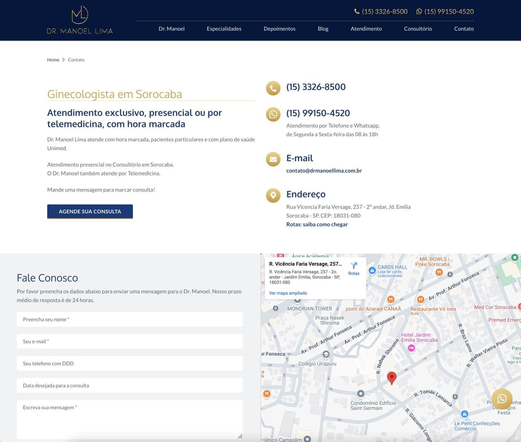 Com base nesse objetivo, iniciamos o desenvolvimento de um site completo, projetado para ser mais do que uma vitrine digital - mas sim um canal de aproximação, um ponto de confiança e uma ferramenta real de conexão com quem busca soluções seguras na área da ginecologia. A primeira etapa foi a consultoria SEO, essencial para definir com precisão os termos de busca mais relevantes utilizados por mulheres da sua região. A partir desse mapeamento, conseguimos estruturar todo o conteúdo do site com foco em posicionamento orgânico, garantindo que o Dr. Manoel aparecesse nos buscadores com relevância.