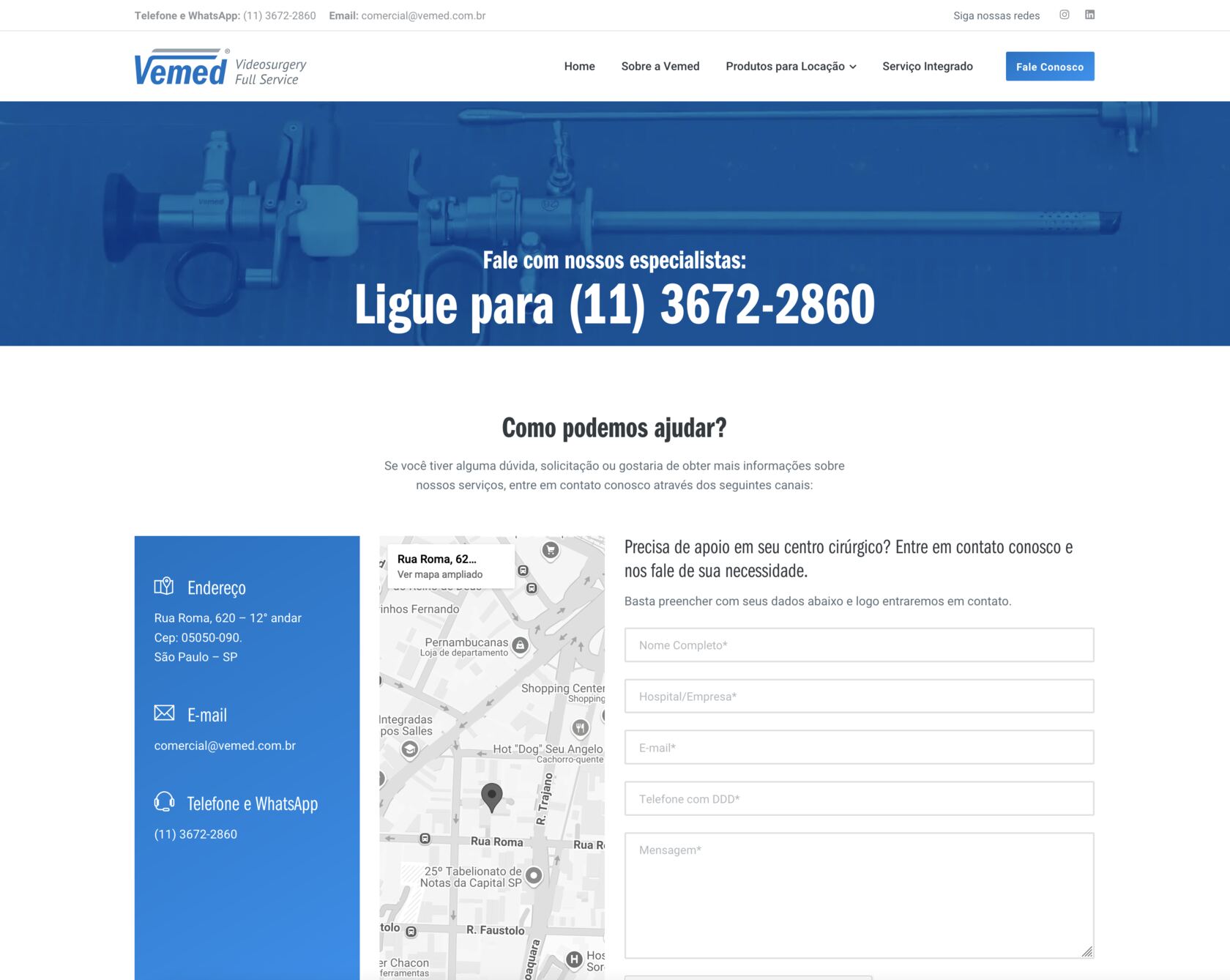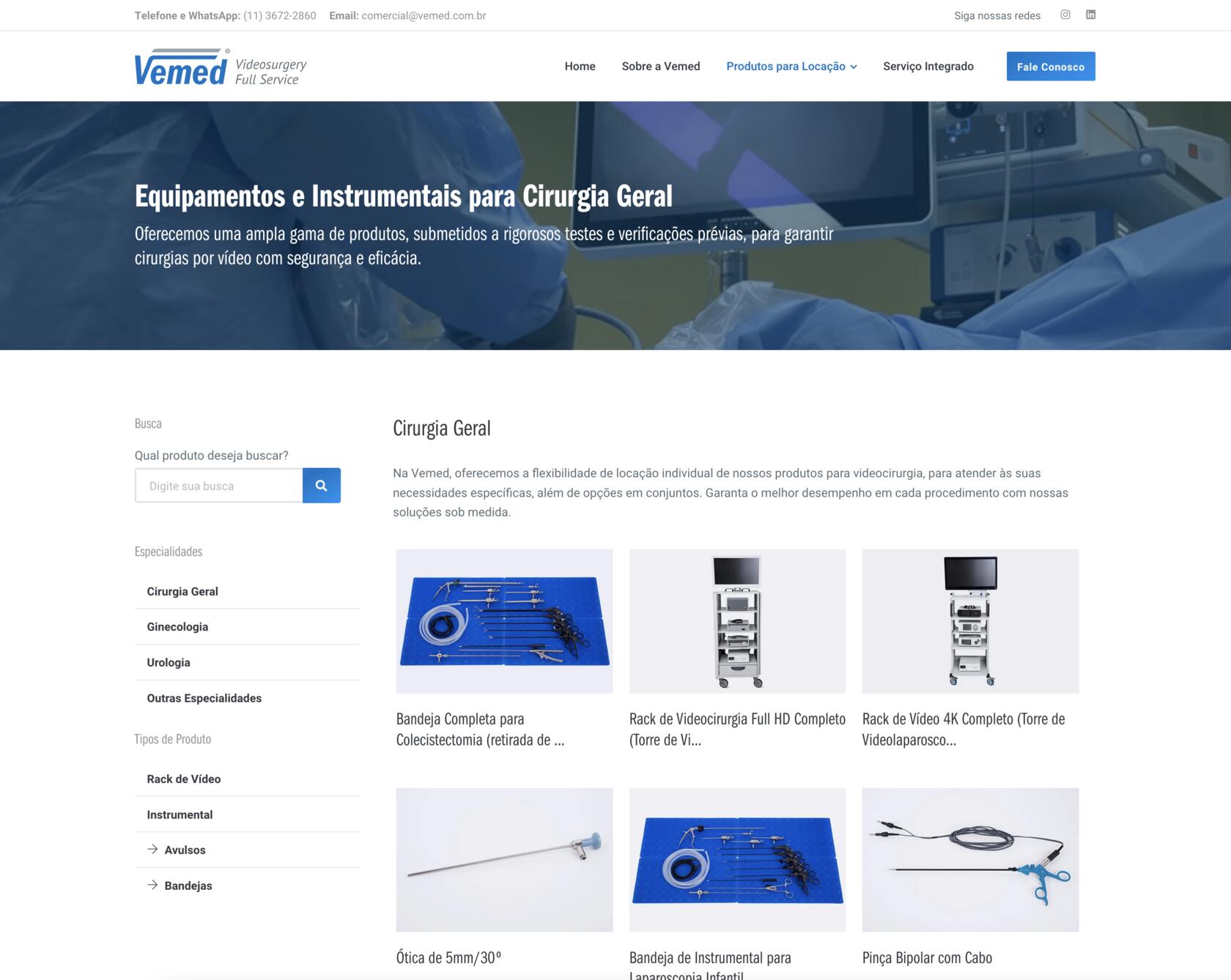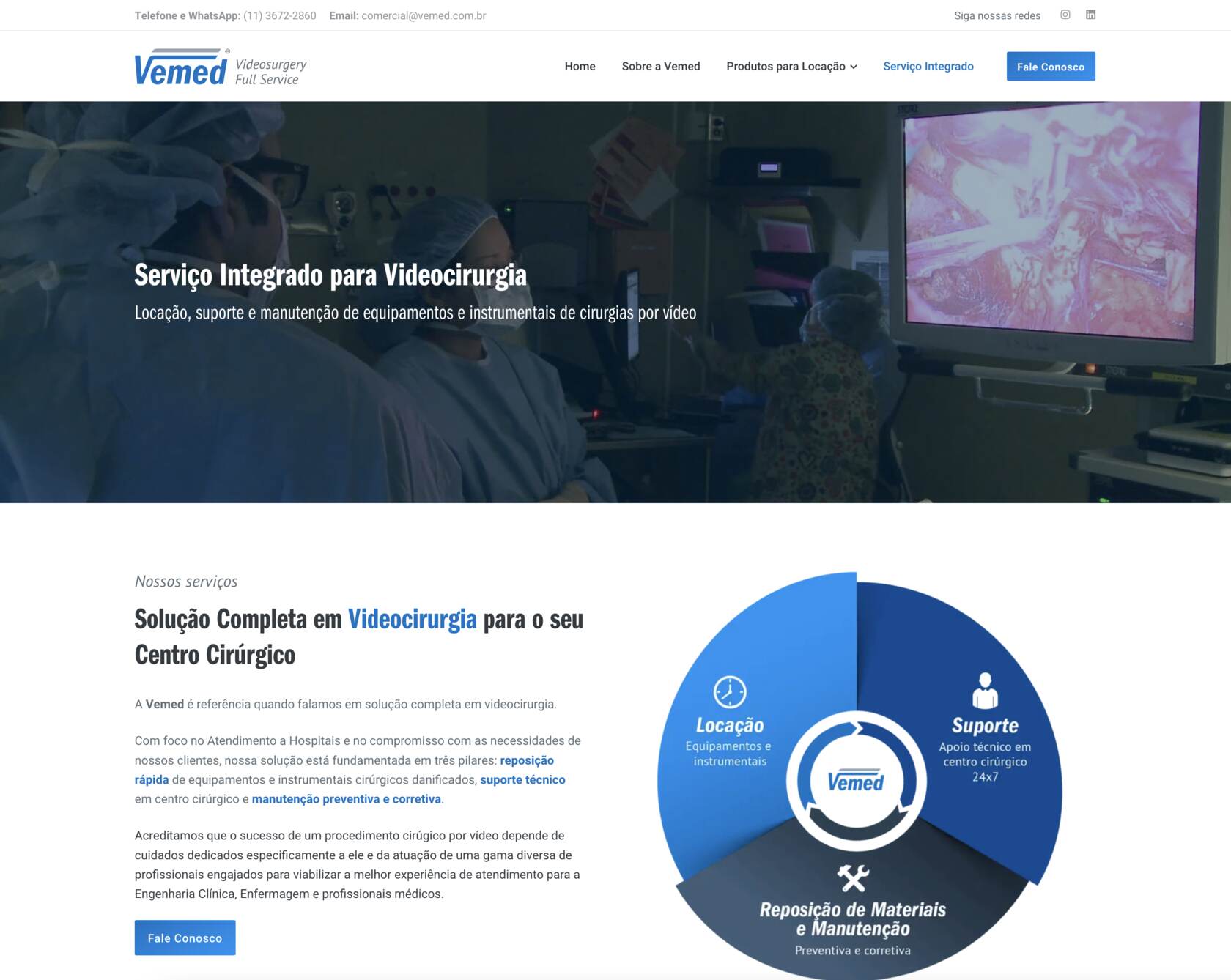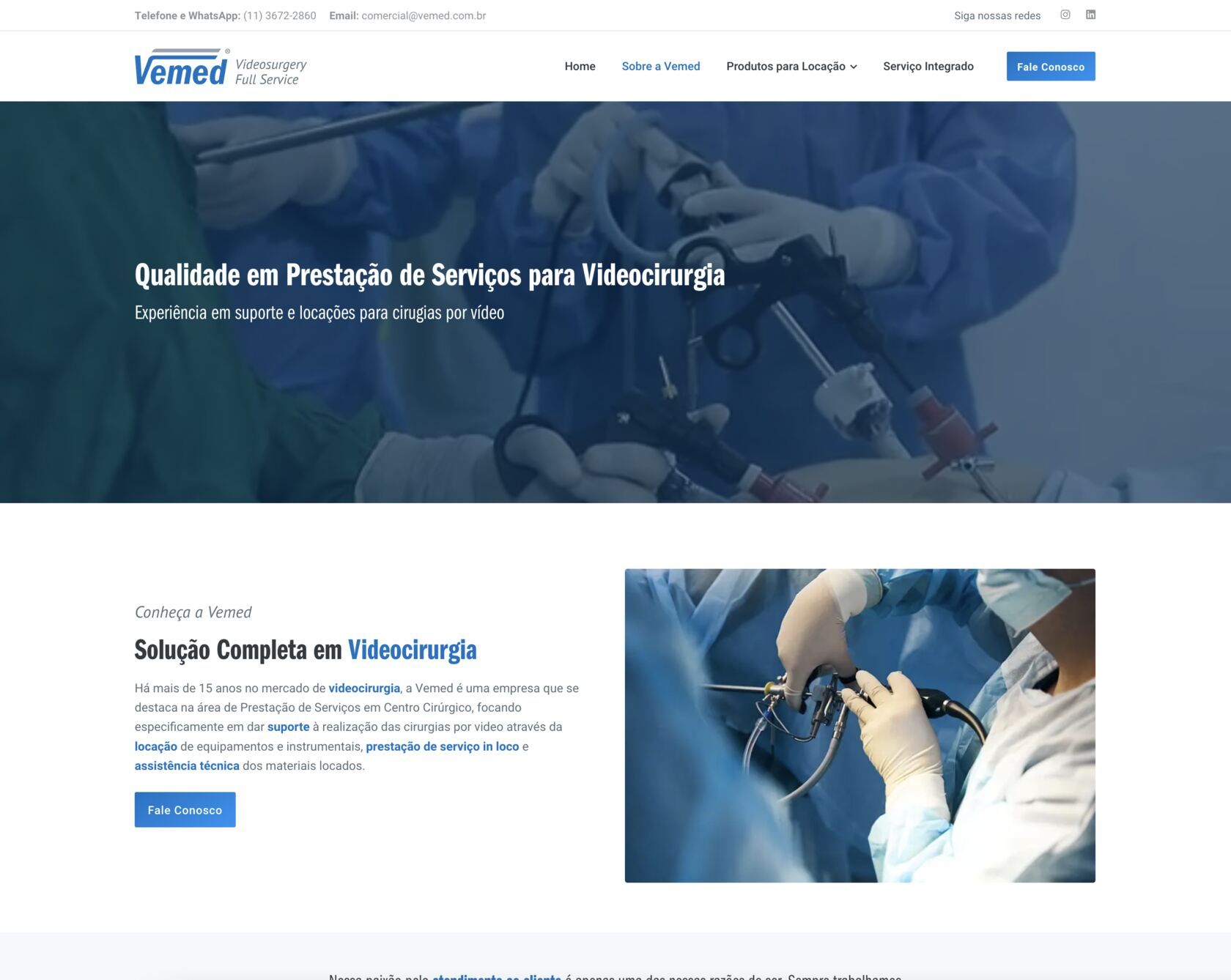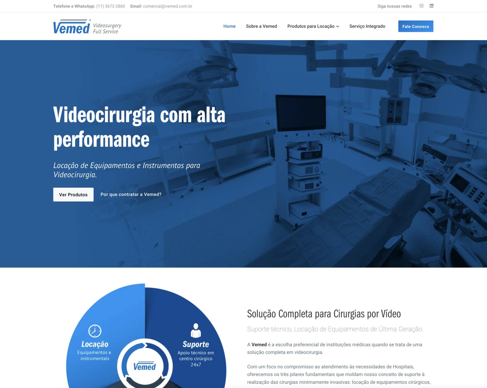 A Vemed é uma empresa que tem papel fundamental na viabilização de procedimentos cirúrgicos minimamente invasivos. Com a locação de equipamentos e instrumentos de alta tecnologia, eles não apenas fornecem soluções técnicas — anteriormente comunicadas de forma mais restrita, com foco exclusivo na locação —, mas agora assumem com clareza os três pilares centrais de sua atuação: locação, manutenção e suporte em centro cirúrgico. Esses diferenciais foram incorporados à nova identidade visual e ao site, posicionando a Vemed como uma empresa completa em serviços de videocirurgia. O que eles fazem impacta diretamente na vida de pacientes e médicos, e essa responsabilidade precisava estar refletida em cada ponto de contato da marca com seu público.