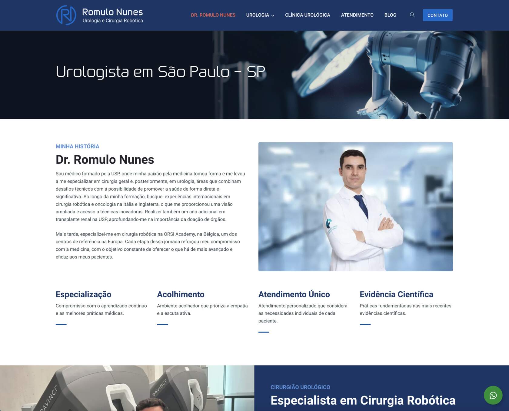 Desde o primeiro contato, ficou claro que o Dr. Rômulo Nunes sabia exatamente onde queria chegar: construir uma presença digital sólida, moderna e que refletisse sua especialização em cirurgia robótica da próstata com clareza e precisão. Urologista com foco em cirurgias de alta complexidade e tecnologia, ele chegou até nossa equipe buscando reposicionar sua imagem e comunicar com mais força seu diferencial técnico.