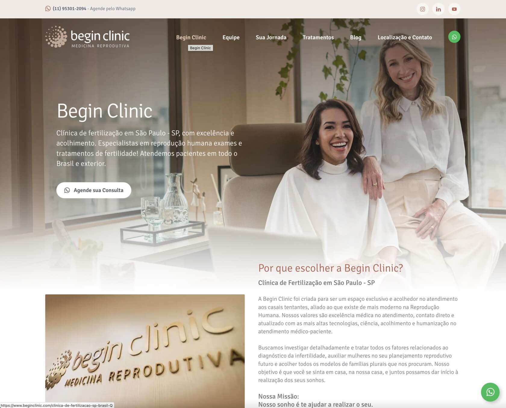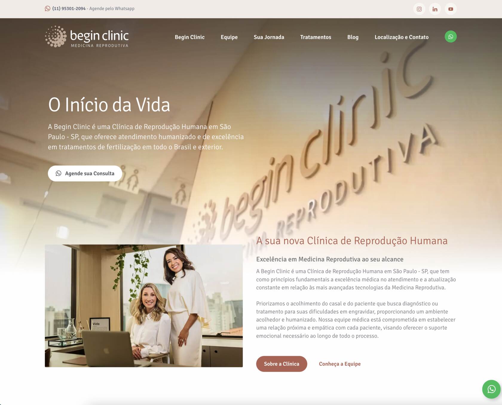 Transformar sonhos em realidade é uma missão especial, e foi com esse propósito que a Begin Clinic nasceu. Nossa parceria começou em março de 2022, quando a clínica nos procurou para construir sua marca e presença digital. Fundada pelas experientes Dras. Paula Vieira e Ludmila Bercaire, a Begin Clinic surgiu com o compromisso de oferecer um atendimento acolhedor e altamente especializado na reprodução humana.
