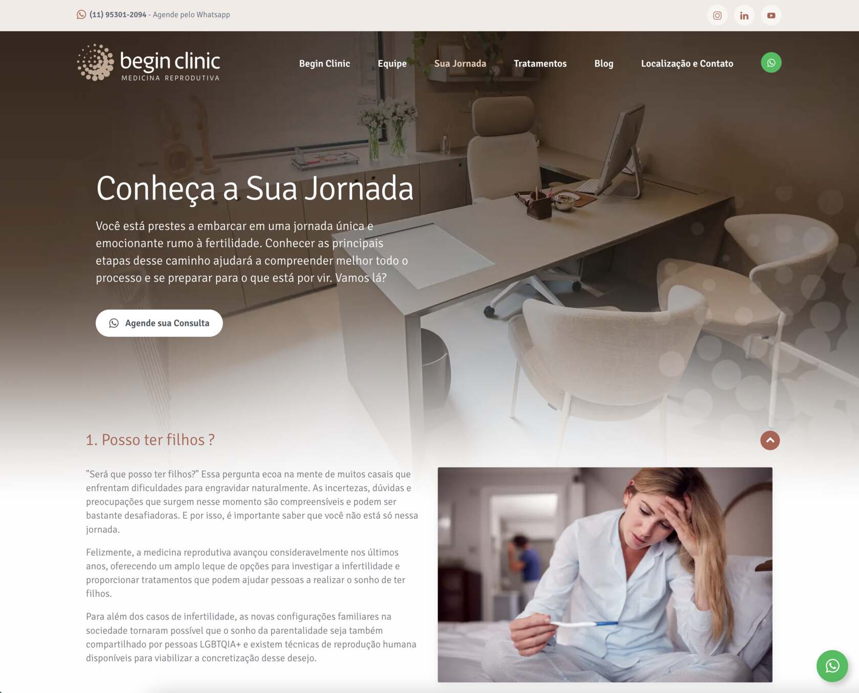 Nosso desafio foi traduzir para o digital toda a essência da clínica. A Begin Clinic foi idealizada para oferecer um espaço aconchegante e exclusivo aos pacientes, e esse mesmo cuidado foi levado ao ambiente digital. Cada detalhe foi pensado para refletir sua missão de acolhimento e excelência.
