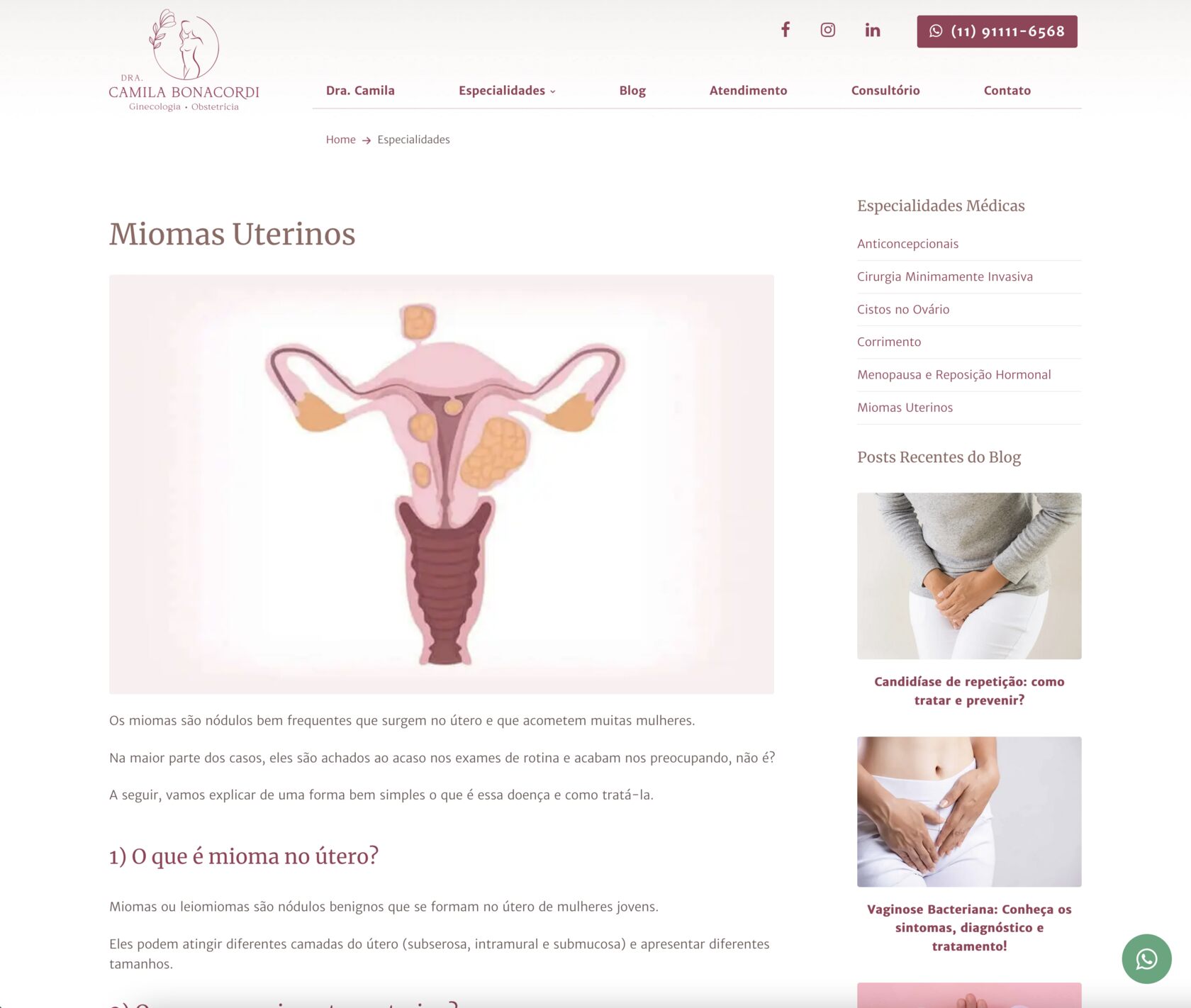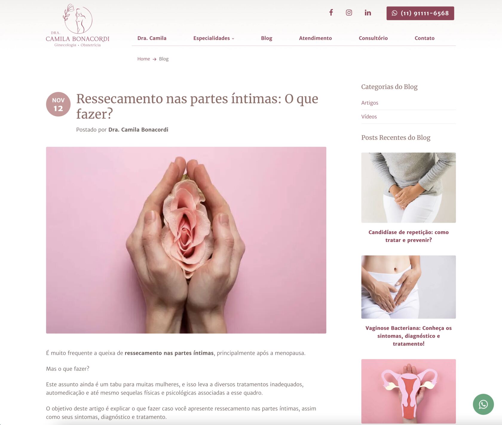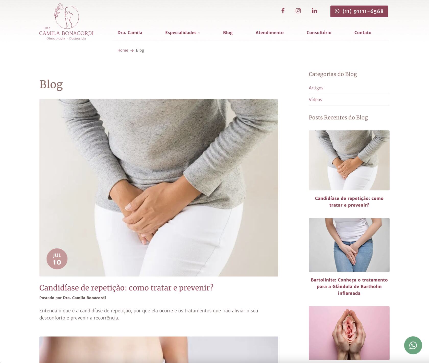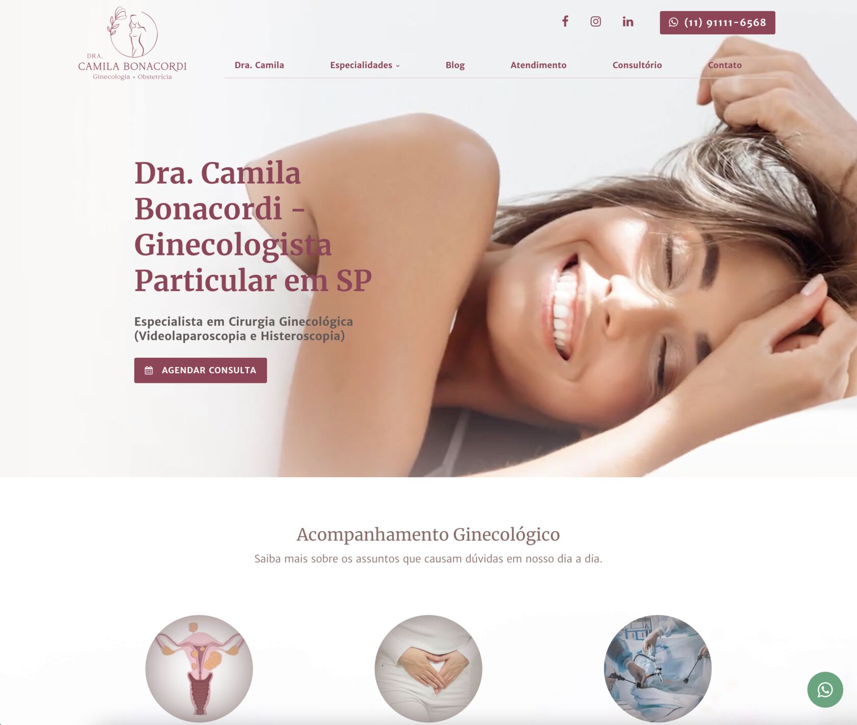 Desenvolvemos um site moderno e responsivo, com um CMS (Content Management System) integrado, oferecendo à Dra. Camila autonomia para atualizar o Blog e compartilhar conteúdos relevantes com suas pacientes.