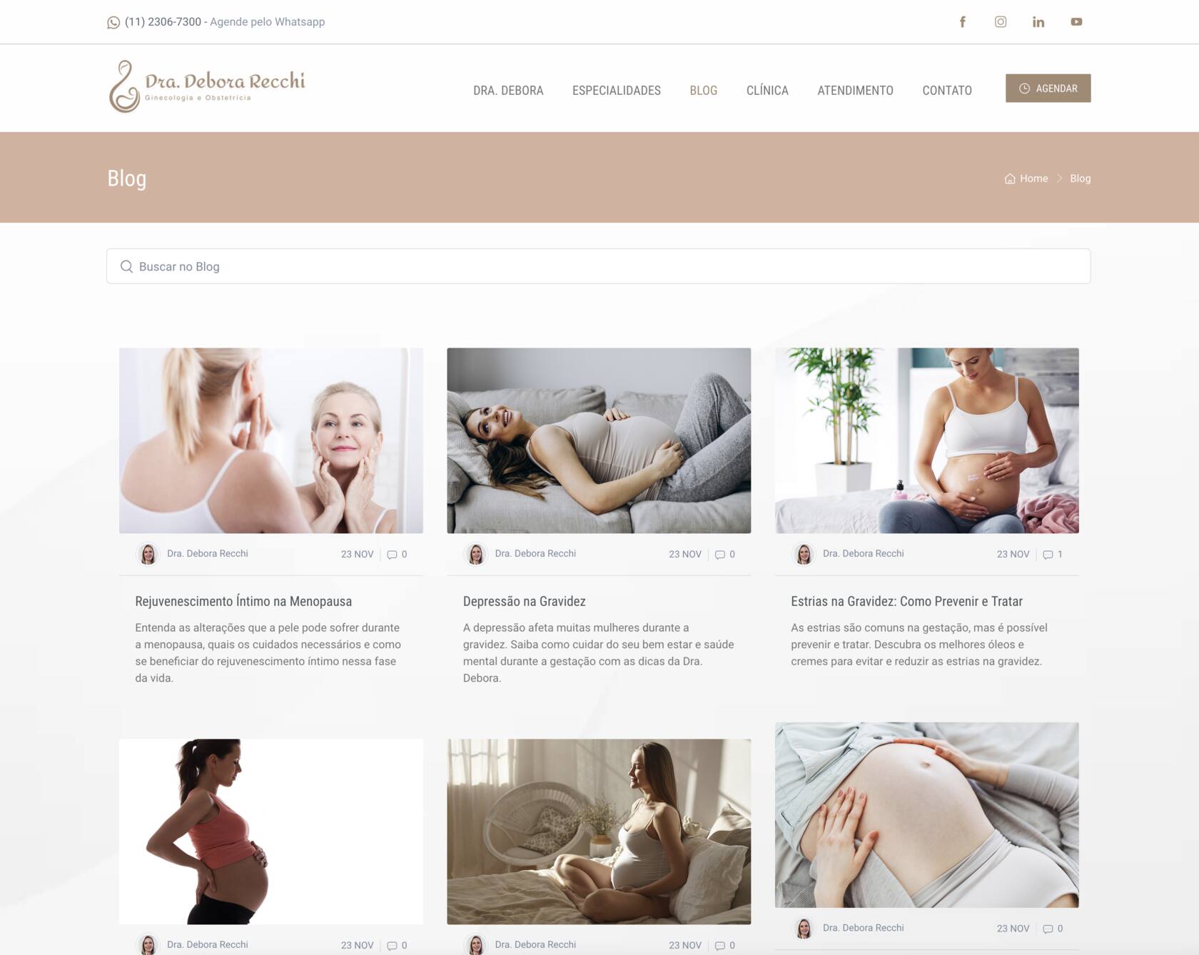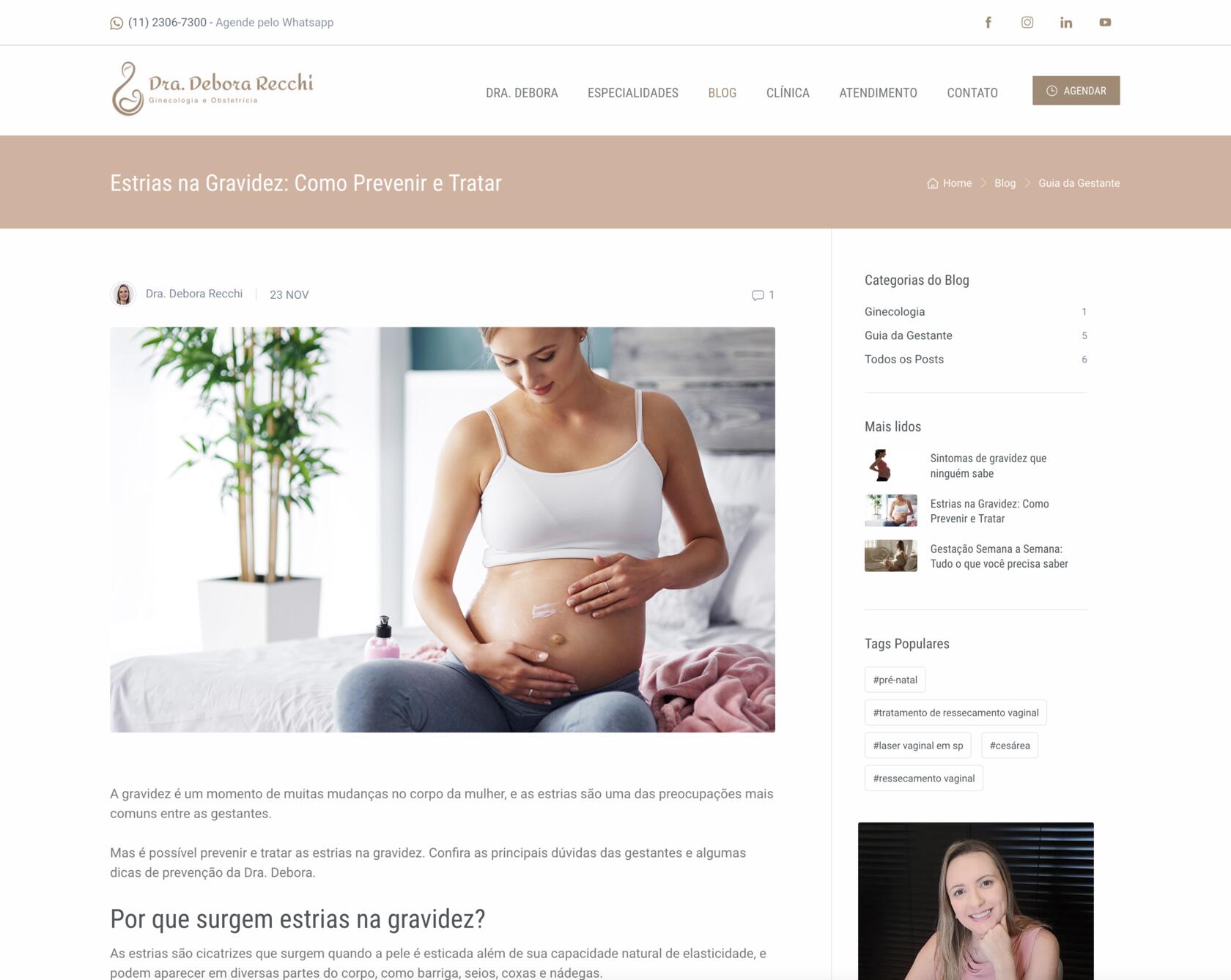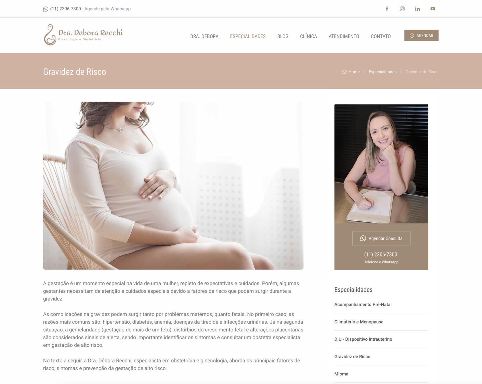 A página da clínica ganhou um espaço especial no novo site. Ali, mostramos não apenas a estrutura física do atendimento, mas também criamos uma experiência digital que espelha o acolhimento que a paciente encontrará presencialmente. A integração com o Google Maps facilita o acesso, enquanto a organização intuitiva do site permite que a navegação seja simples, confortável e fluida. Na página de atendimento, explicamos com transparência como funciona o trabalho da Dra. Debora, com informações importantes sobre convênios e formas de marcação de consultas. Já na área de contato, desenvolvemos um formulário para facilitar a comunicação direta com a equipe, permitindo que as pacientes enviem dúvidas, pedidos de agendamento ou mensagens com poucos cliques, de forma prática e segura.