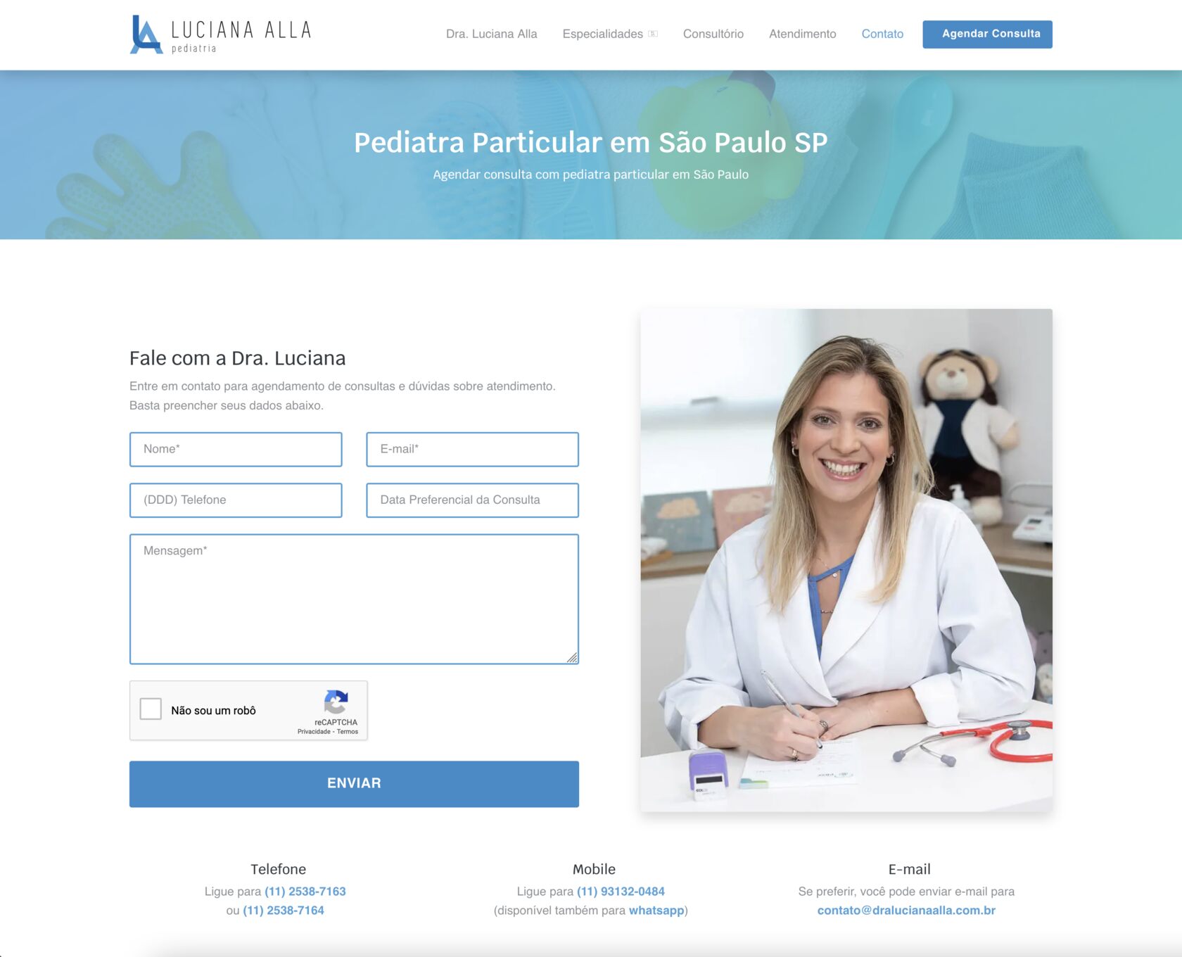 A página de contato é um canal direto para os pais entrarem em comunicação com a Dra. Luciana, seja para tirar dúvidas, seja para agendar consultas, tudo de maneira simples e prática.